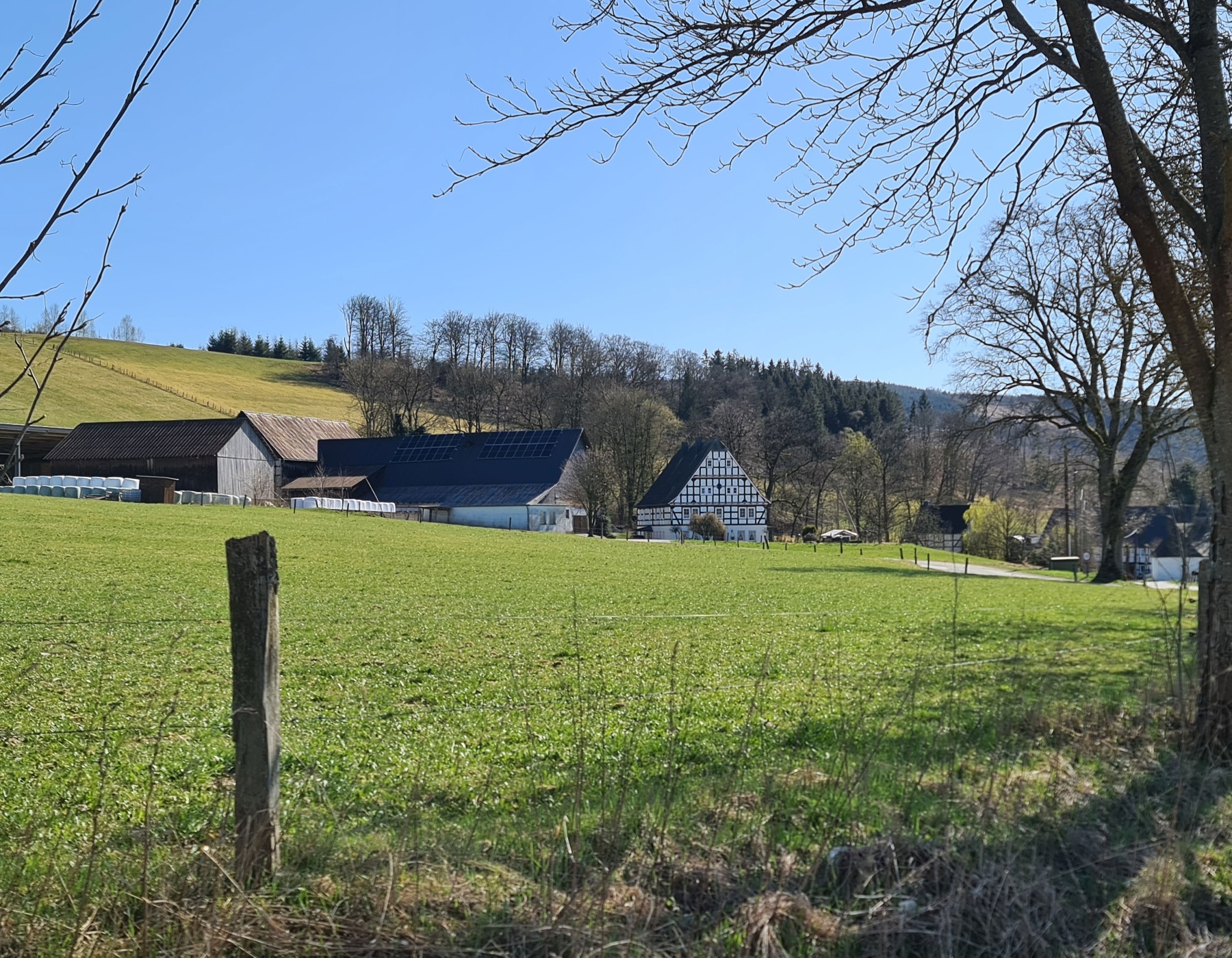 Am Ortsschild von Winkhausen wenden Sie sich links und gehen immer mit dem Asphaltweg ansteigend. Oben angekommen sehen Sie schon wieder die Häuser des Wohnplatzes Almert und den Wanderparkplatz.