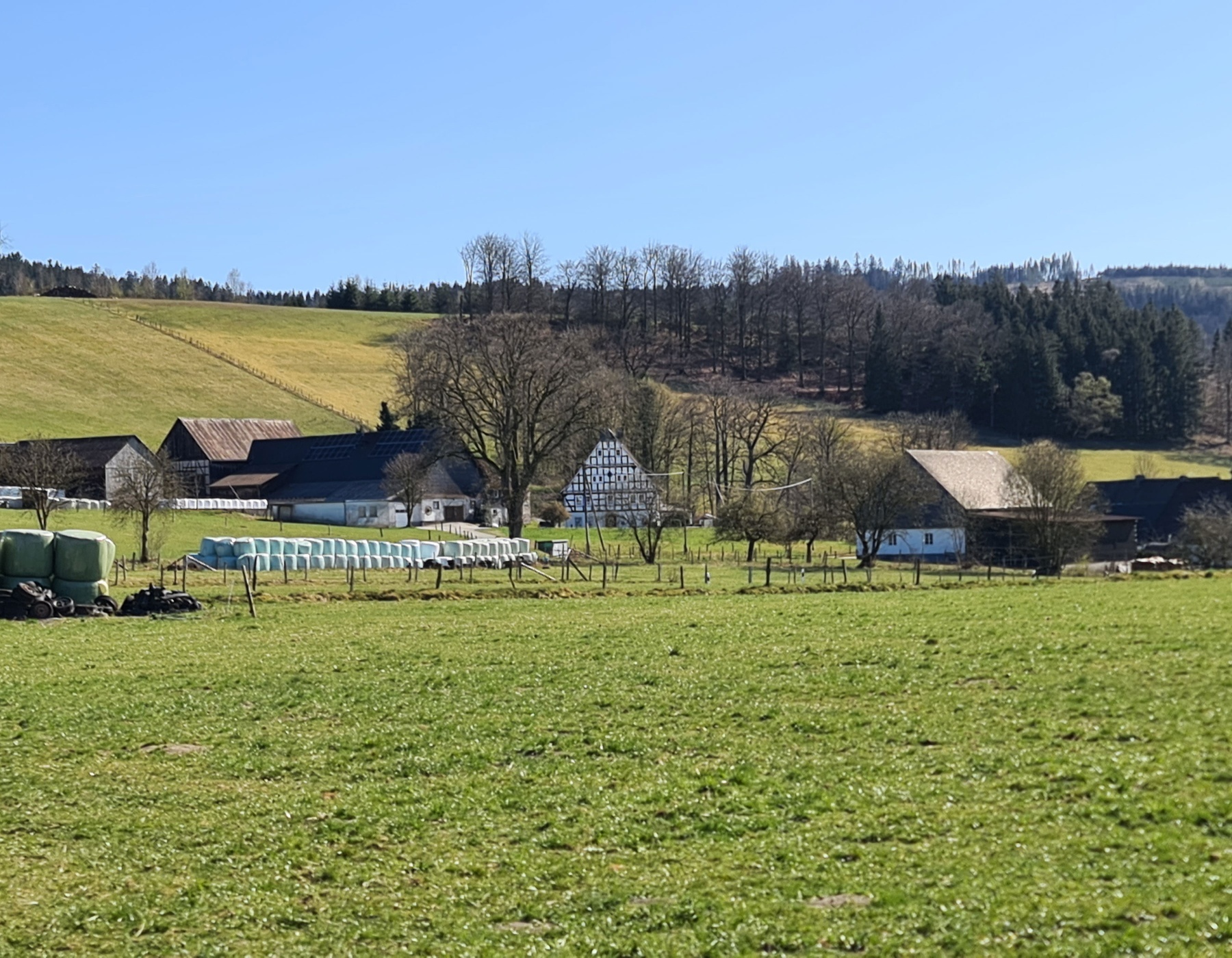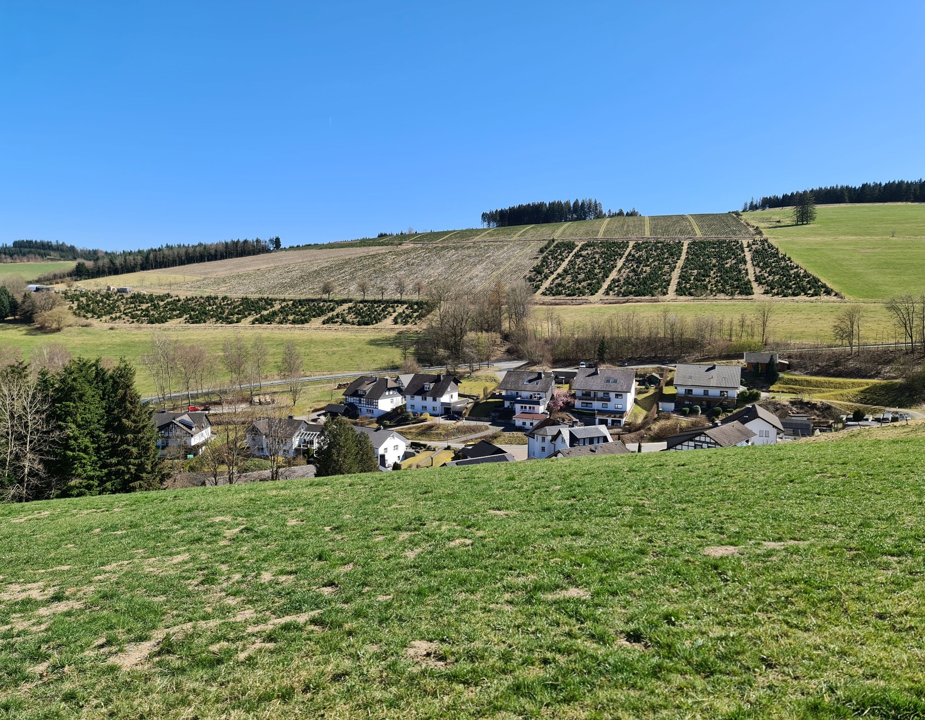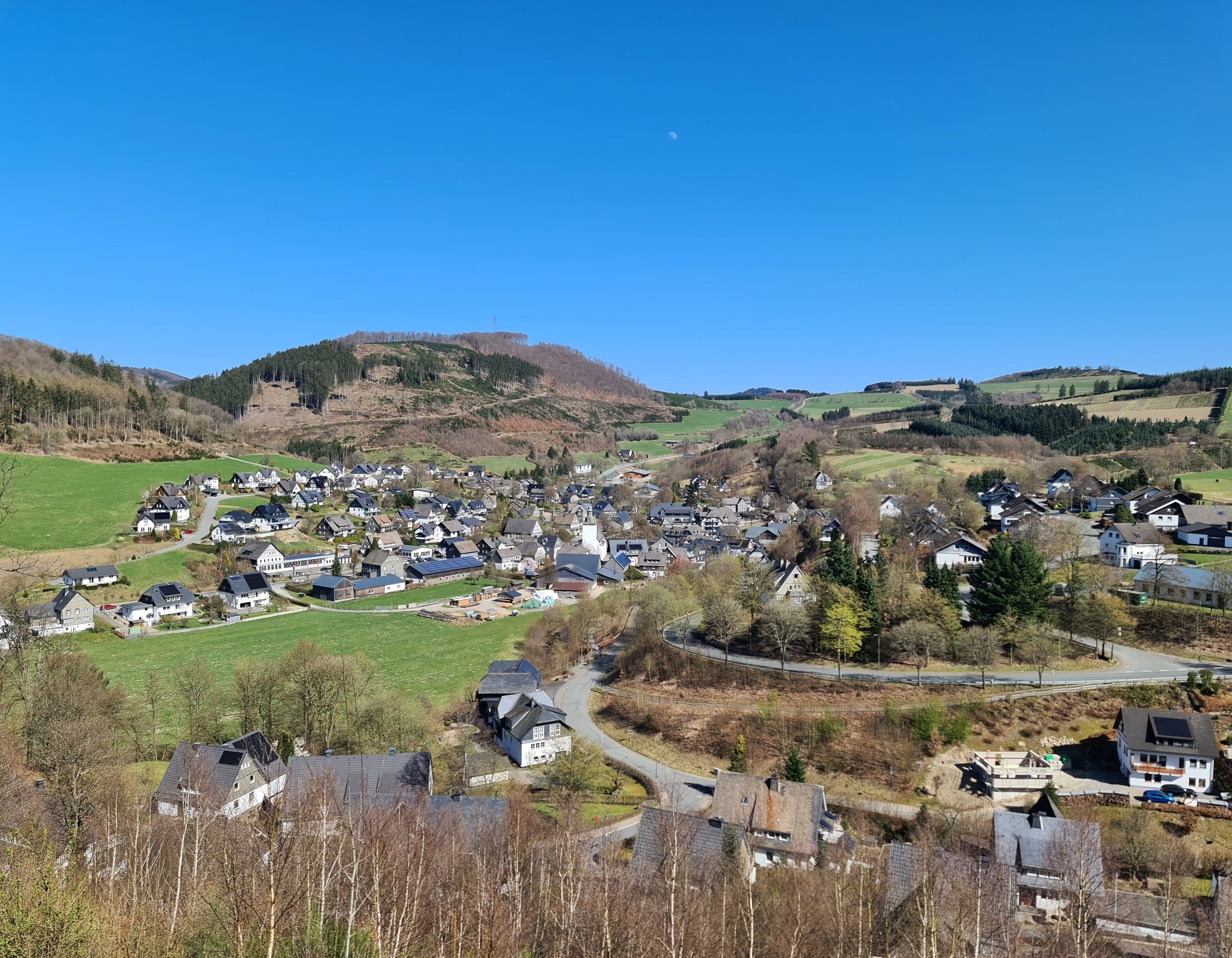 Das Dörfchen Almert und der Wanderparkplatz liegen auf einer Kuppe an der K17 zwischen den Schmallenberger Orten Grafschaft und Oberkirchen.